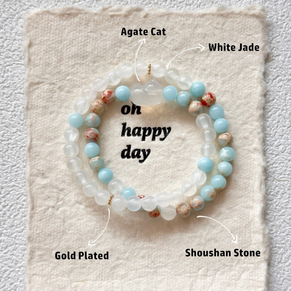 Agate and Jade Blue Cat Natral Stone Bracelet