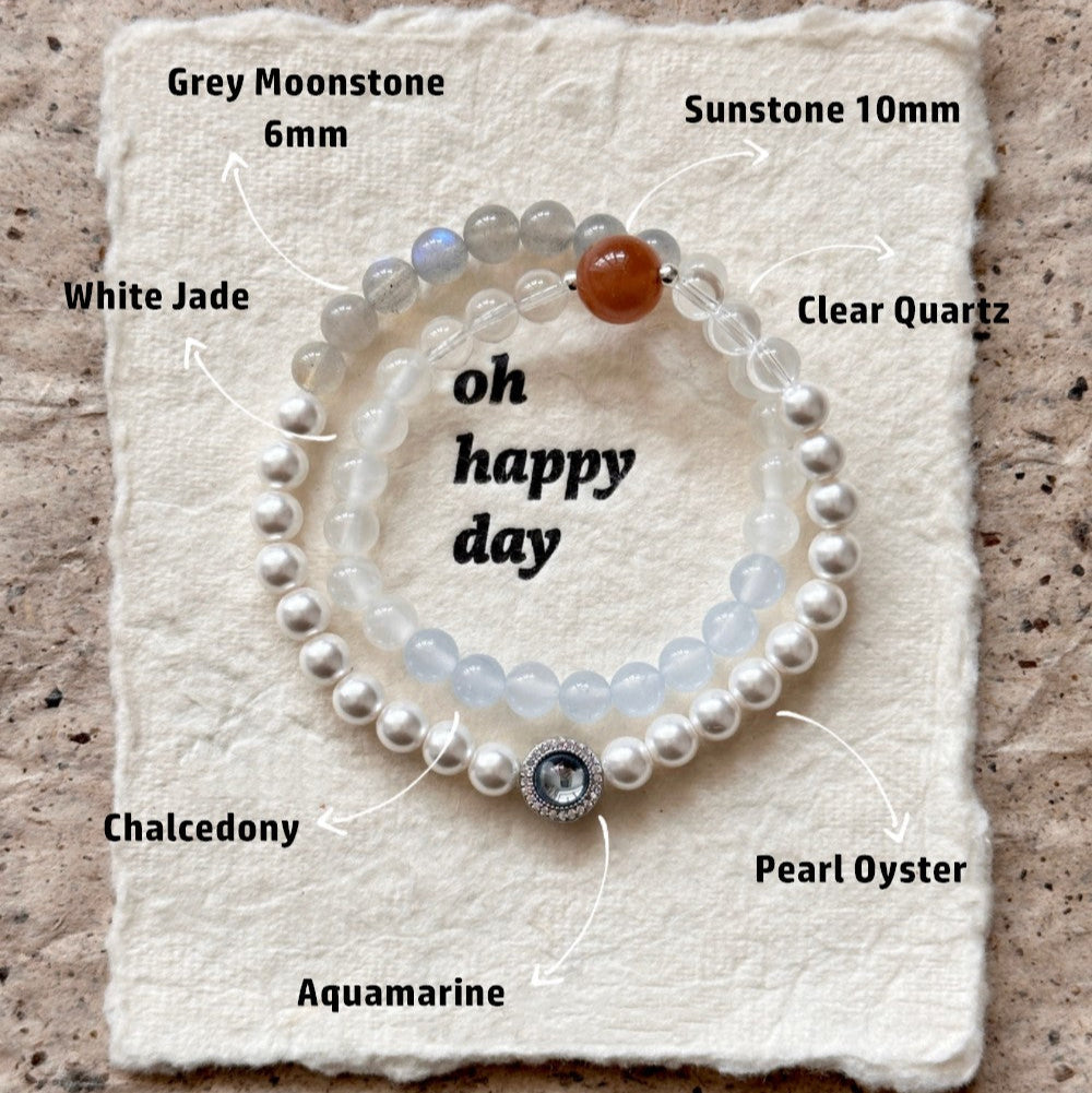 Moonstone Pearl Clear Quartz Jade Sunstone Bracelet