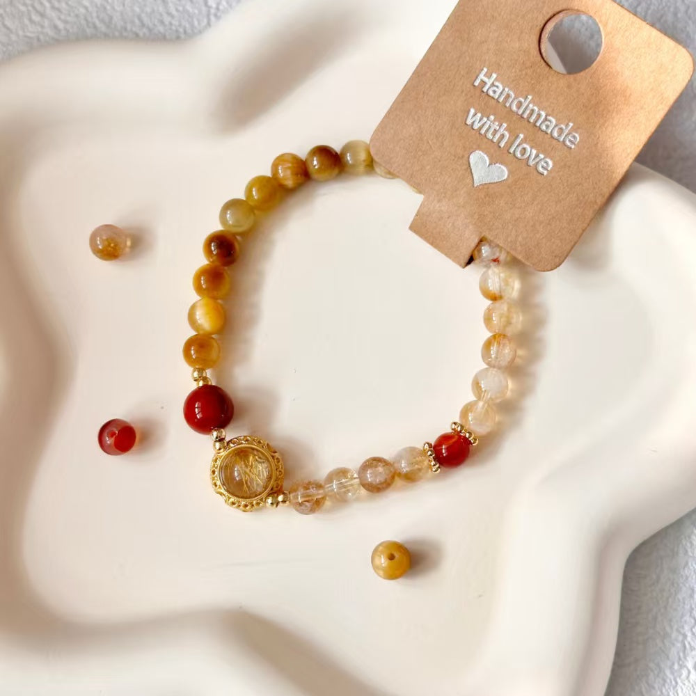 Materials:Red Agate, Tiger's Eye Stone,Crystal,Citrine,Red Agate,Rhodonite.