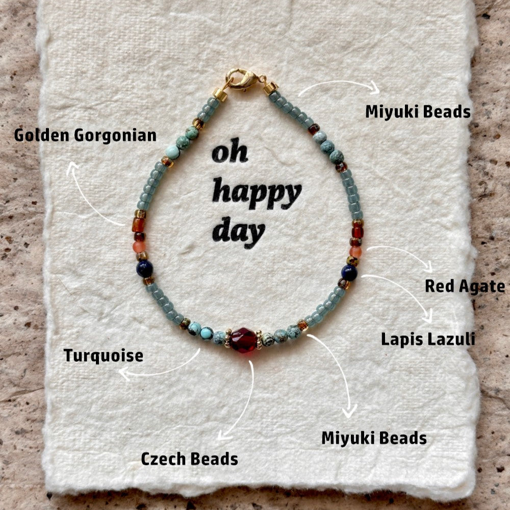 Materials:Miyuki Beads,Turquoise,Czech Beads,Lapis Lazuli,Red Agate,Golden Sea Willow.